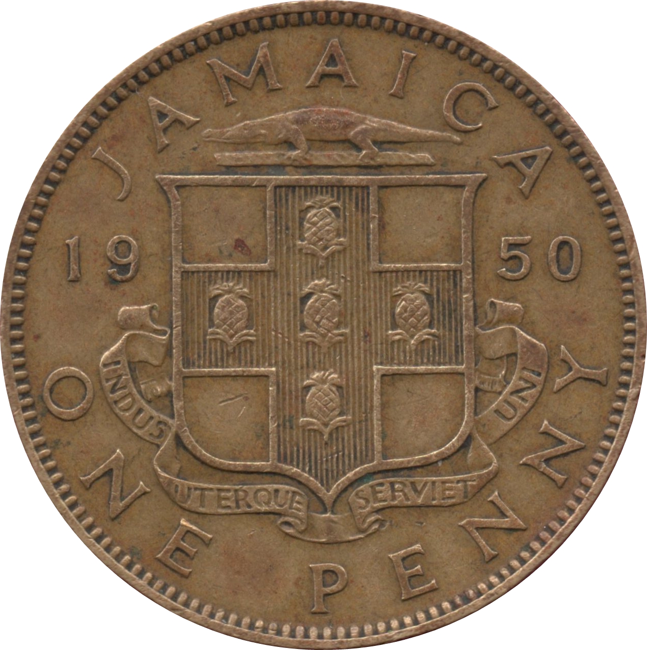 1 пенні — Георг VI (без напису «Король та імператор») 1950 – 1952 Ямайка