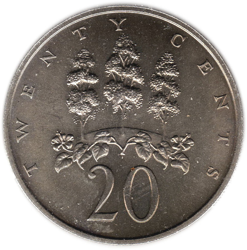 20 центів (широкий напис) 1969 – 1990 Ямайка