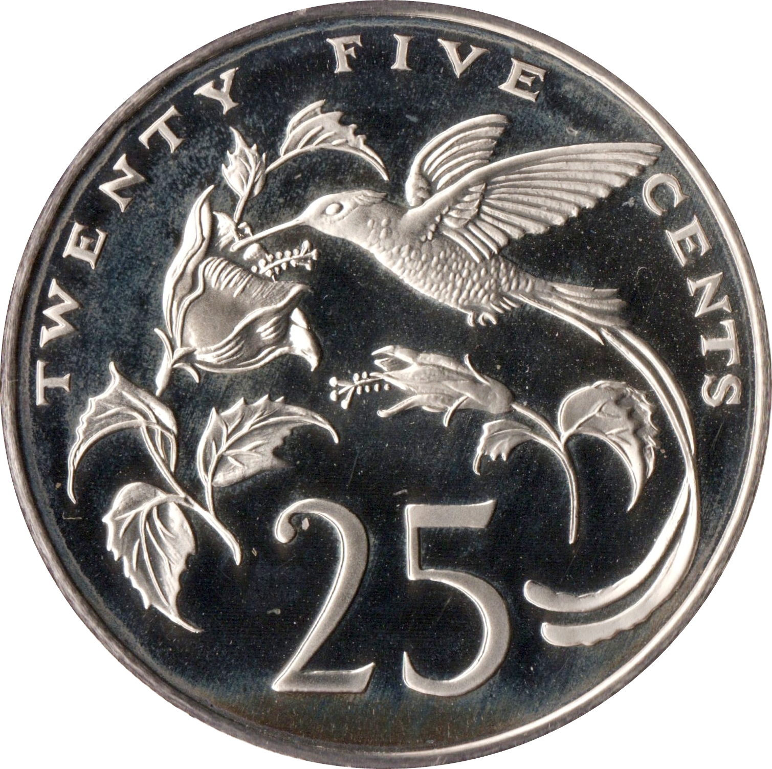 25 центів (вузький напис; серійний випуск) 1971 – 1984 Ямайка