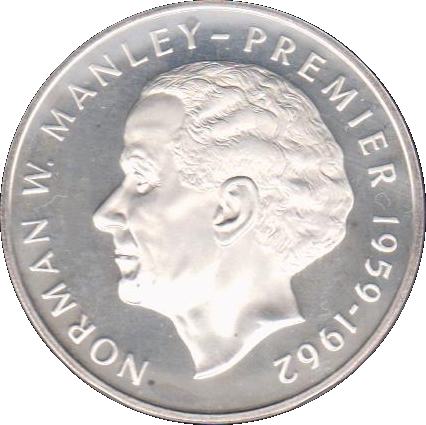 5 доларів (Норман В. Менлі; мідь-нікель; дрібний шрифт) 1980 – 1984 Ямайка