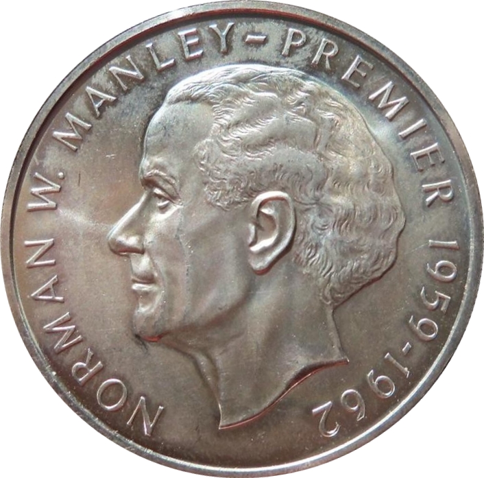 5 доларів (Норман В. Менлі; срібло; великий шрифт) 1972 – 1973 Ямайка