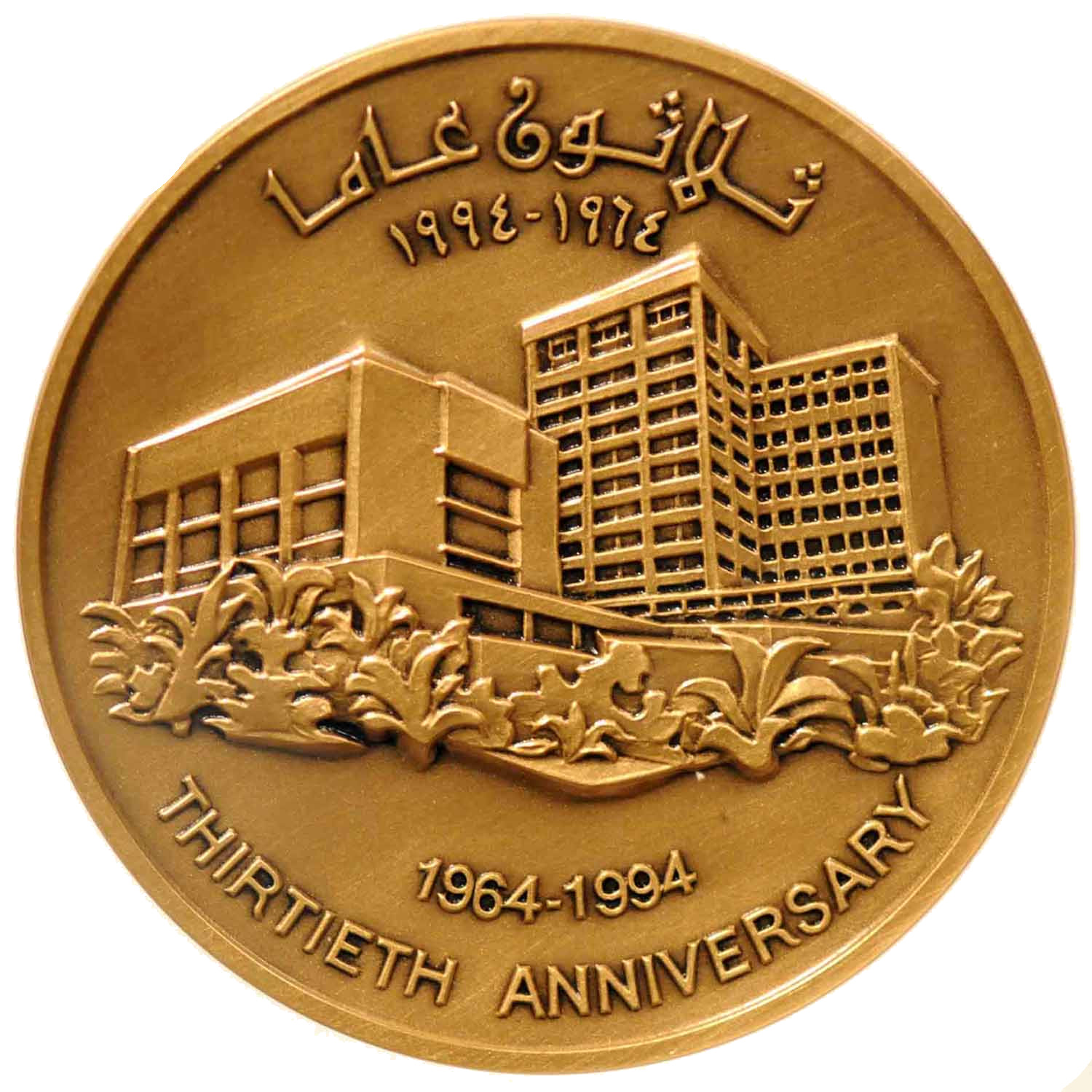 Медаль CBJ — Хусейн (30-річчя Центрального банку; бронза) 1994 – 1994 Йорданія