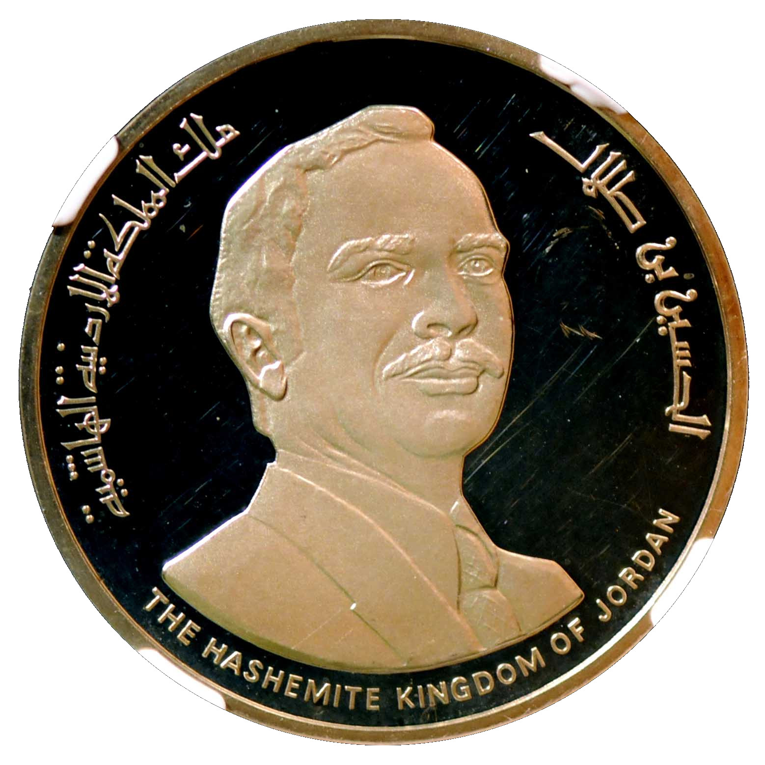 Опис: Бюст короля Хусейна бін Талала, звернений праворуч