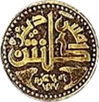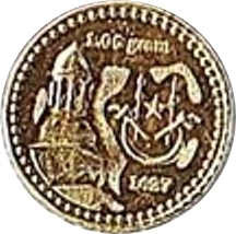 Опис: Монограма над датою та вагою (неправильно вказана як 2,06 грама замість 1,06) арабською мовою мелаю.
