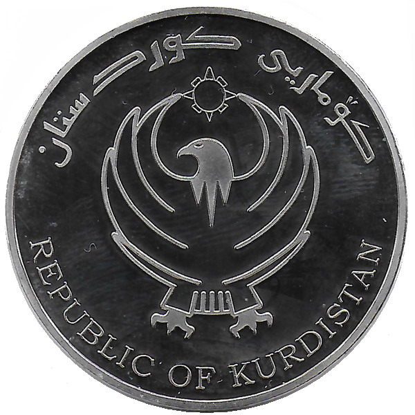 Опис: Зображення герба регіонального уряду Іракського Курдистану. Напис «REPUBLIC OF KURDISTAN» (РЕСПУБЛІКА КУРДИСТАН), написаний англійською та курдською мовами по периметру монети.