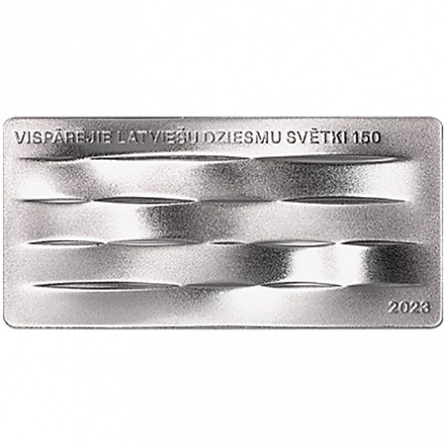 Опис: Зворотний бік монети одноколірний, у верхній частині розміщено напис «THE NATIONWIDE LATVIAN SONG CELEBRATION 150», а в правому нижньому куті — рік «2023».