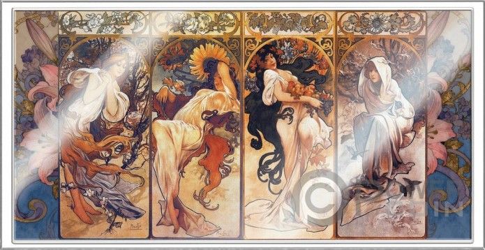 Опис: Кольорове зображення серії літографій Альфонса Мухи «Чотири пори року» 1897 року