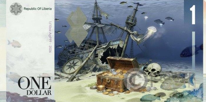 Опис: Затонулий корабель у глибинах з скарбом, повним золотих монет і черепом, навколо плавають риби.
