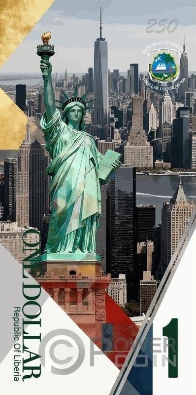 Опис: Статуя Свободи на передньому плані та панорама Нью-Йорка на задньому плані.