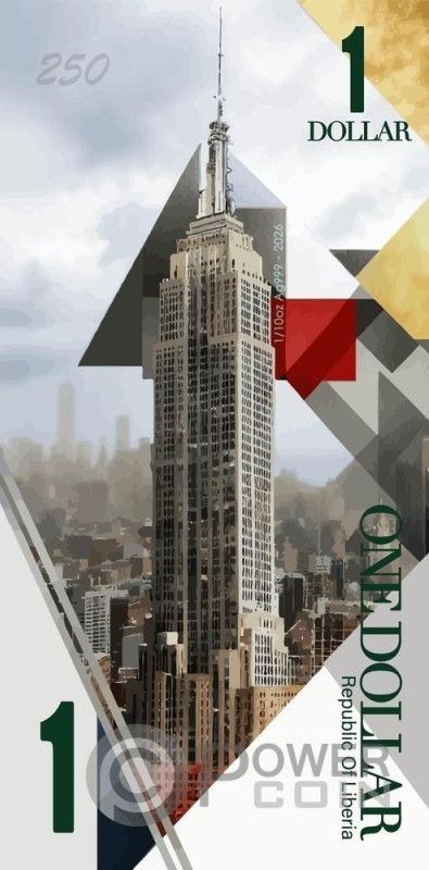 Опис: Емпайр-Стейт-Білдінг на передньому плані та панорама Нью-Йорка на задньому плані.