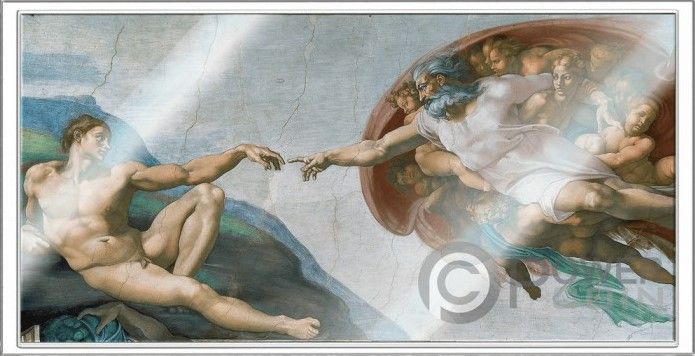 Опис: Кольорове зображення фрески Мікеланджело «Створення Адама»