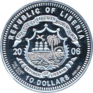 10 доларів (Французька Полінезія — блакитний лорікет) 2006 – 2006 Ліберія