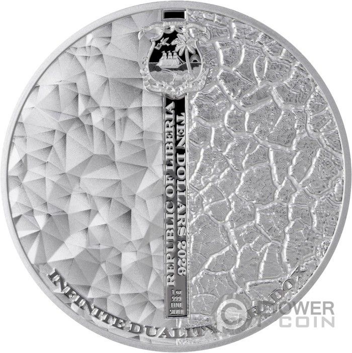 Опис: Герб Ліберії з вертикальною смугою з написом, що розділяє дві поверхні з різними візерунками.