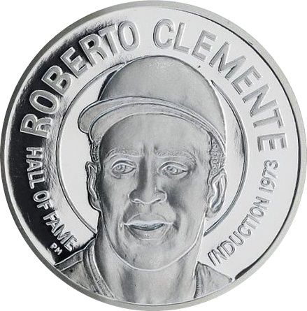 Опис: Бюст Роберто Клементе в бейсболці, звернений вперед.