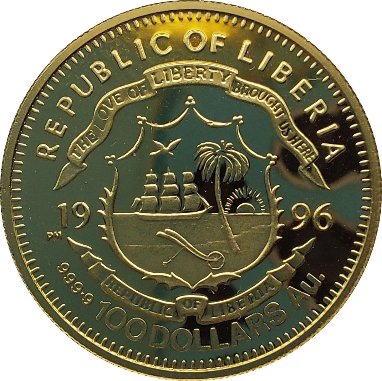 Опис: Герб Ліберії розділяє дату та номінал, що вказані нижче.