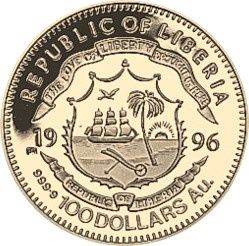 Опис: Герб Ліберії розділяє дату та номінал, що вказані нижче.