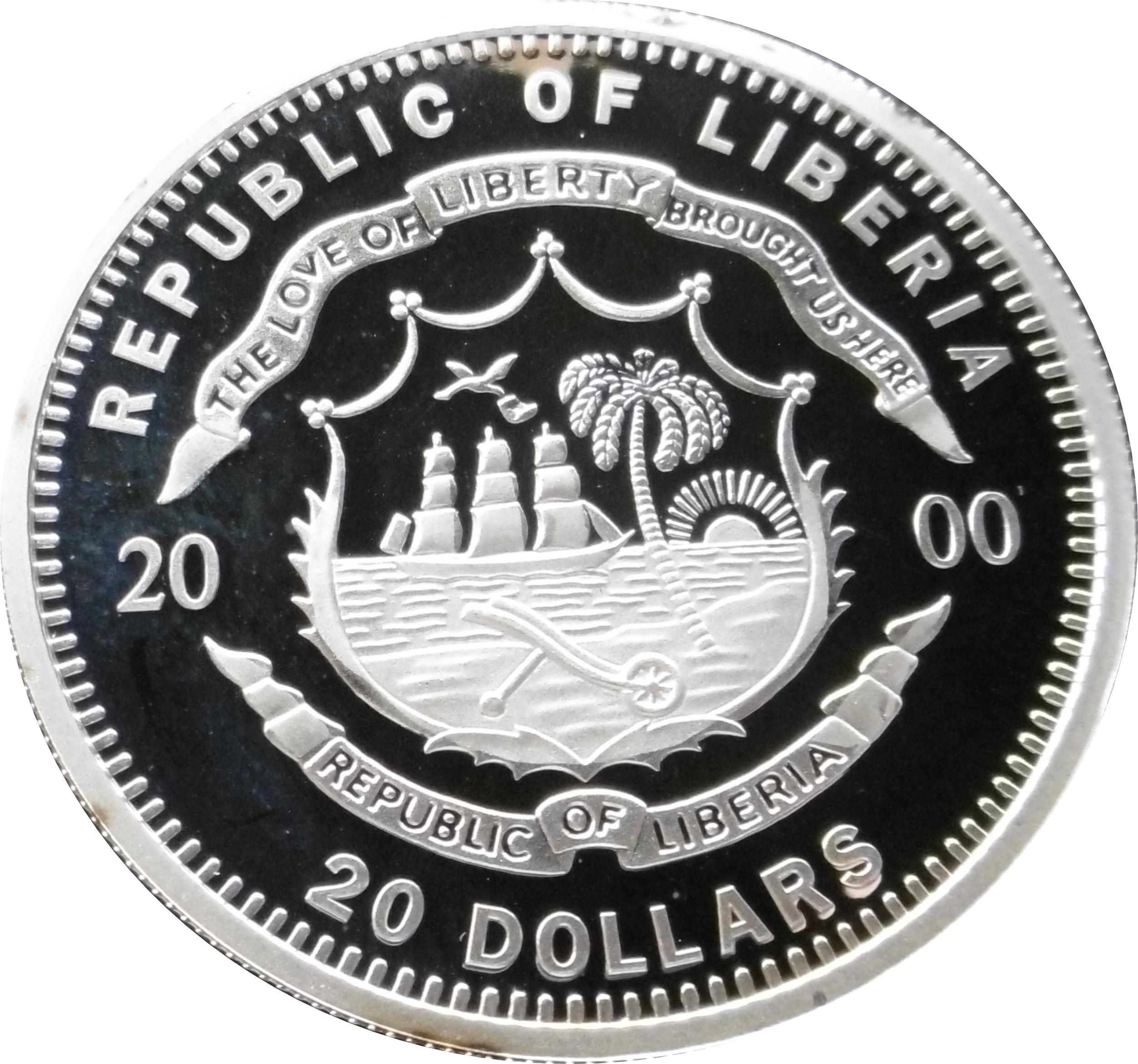 Опис: Герб Ліберії розділяє дату та номінал, що вказані нижче.