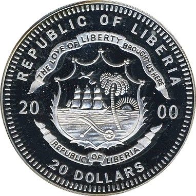 Опис: Герб Ліберії розділяє дату та номінал, що вказані нижче.