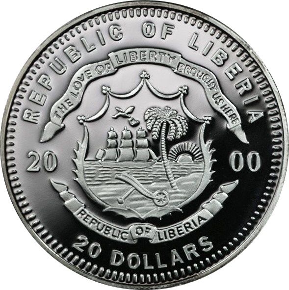 Опис: Герб Ліберії розділяє дату та номінал, що вказані нижче.