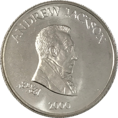 Опис: Модифікована печатка президента Сполучених Штатів (E PLURIBUS UNUM замінено на LIBERTY, у верхній частині щита додано контур однієї зірки), оточена написом REPUBLIC OF LIBERIA зверху та номіналом знизу.