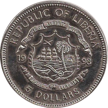 Опис: Герб Ліберії розділяє дату та номінал нижче.