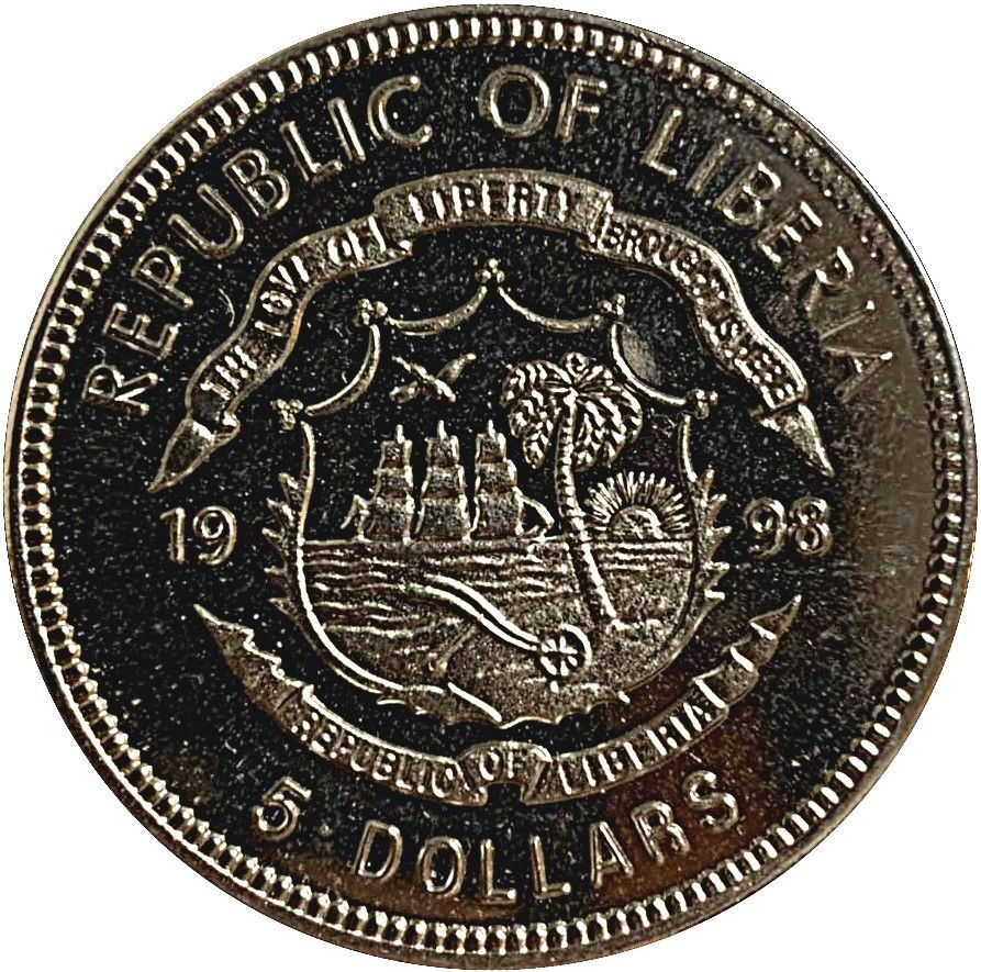 Опис: Герб Ліберії розділяє дату та номінал нижче.