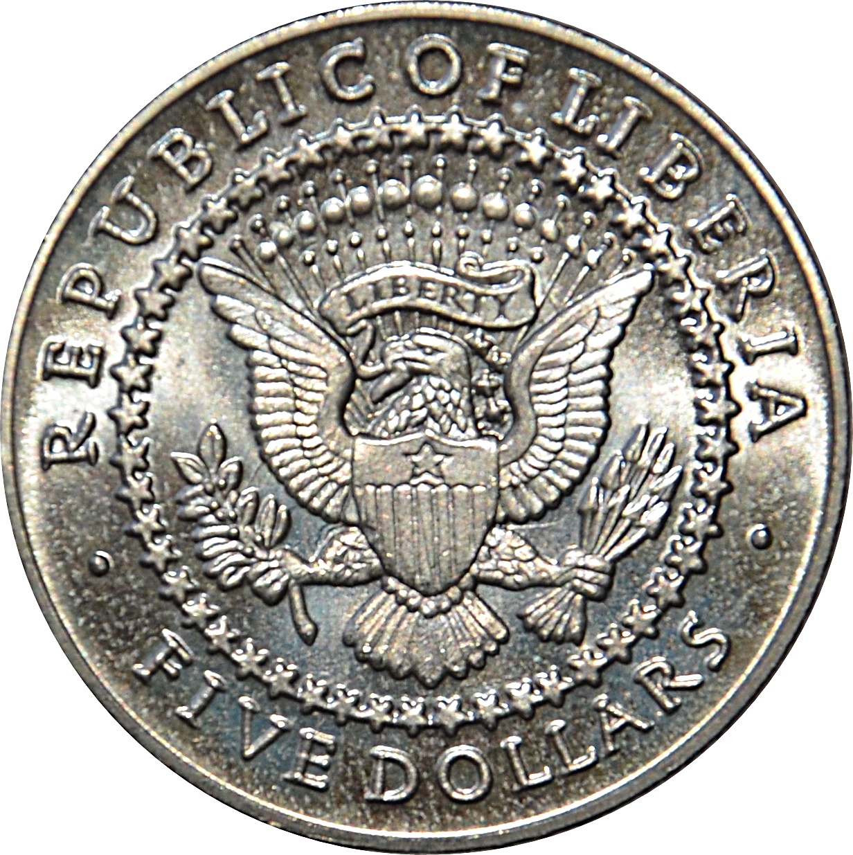 Опис: Модифікована печатка президента Сполучених Штатів (E PLURIBUS UNUM замінено на LIBERTY, у верхній частині щита додано контур однієї зірки), оточена написом REPUBLIC OF LIBERIA зверху та номіналом знизу.
