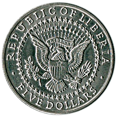 Опис: Модифікована печатка президента Сполучених Штатів (E PLURIBUS UNUM замінено на LIBERTY, у верхній частині щита додано контур однієї зірки), оточена написом REPUBLIC OF LIBERIA зверху та номіналом знизу.