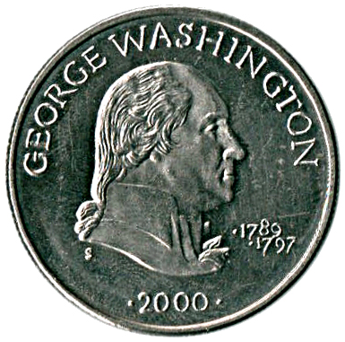 Опис: Погруддя Джорджа Вашингтона, звернене вправо.