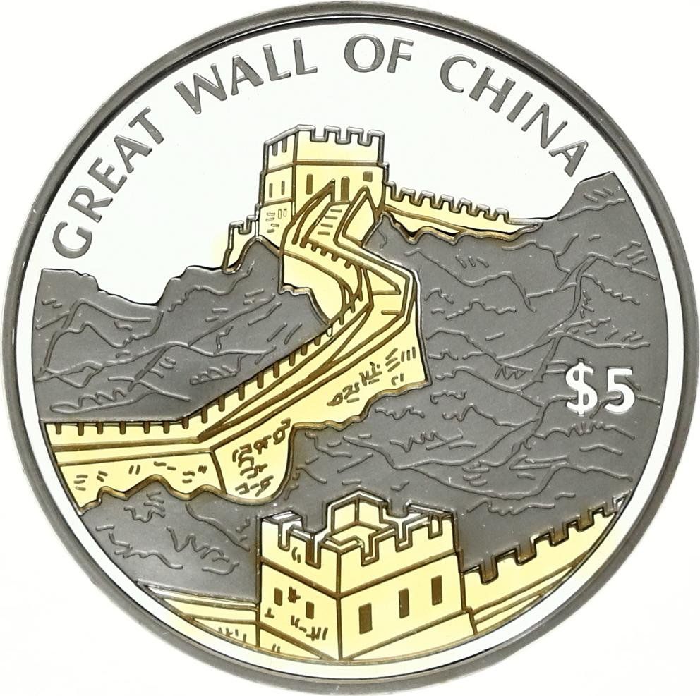 5 доларів (Велика китайська стіна; позолочена) 2006 – 2006 Ліберія