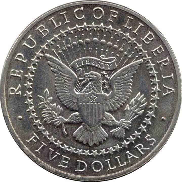 Опис: Модифікована печатка президента Сполучених Штатів (E PLURIBUS UNUM замінено на LIBERTY, у верхній частині щита додано контур однієї зірки), оточена написом REPUBLIC OF LIBERIA зверху та номіналом знизу.