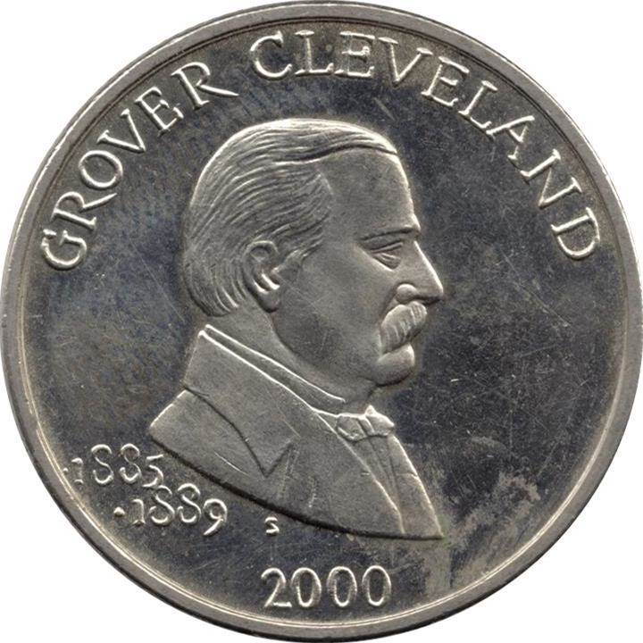Опис: Погруддя Гровера Клівленда, звернене вправо.