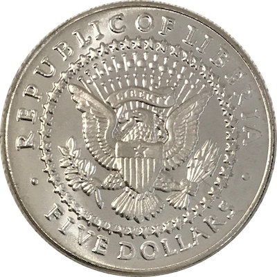 Опис: Модифікована печатка президента Сполучених Штатів (E PLURIBUS UNUM замінено на LIBERTY, у верхній частині щита додано контур однієї зірки), оточена написом REPUBLIC OF LIBERIA зверху та номіналом знизу.