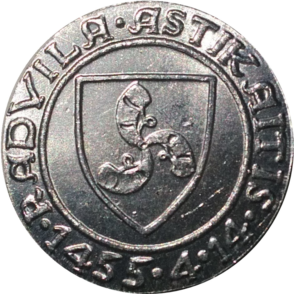 Опис: Щит з трьома рогами у формі трикутника, мундштуки яких з'єднані (герб, який використовували Радвіла Астікаїтіс та шляхетська родина Астікаїв), оточений текстом, що йде по колу навколо нього.