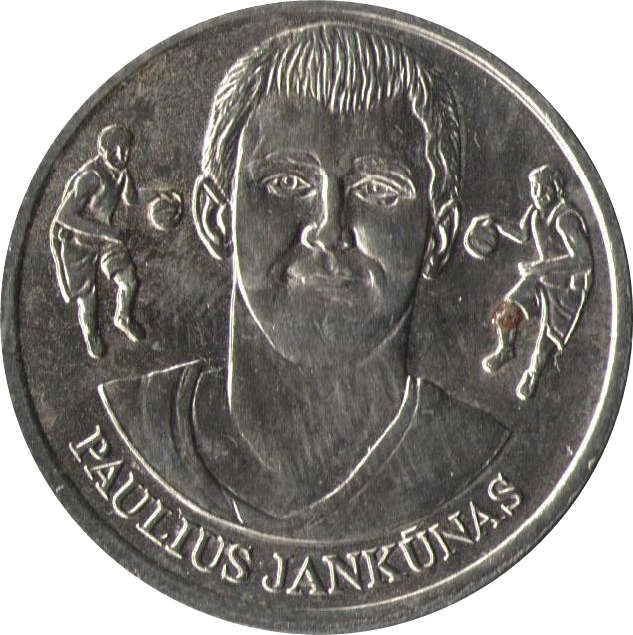Опис: ПАУЛІУС ЯНКŪНАС (1984). З баскетбольною командою Литви виграв срібні медалі на чемпіонаті Європи 2015 року та бронзові медалі на чемпіонаті світу 2010 року і чемпіонаті Європи 2007 року.
