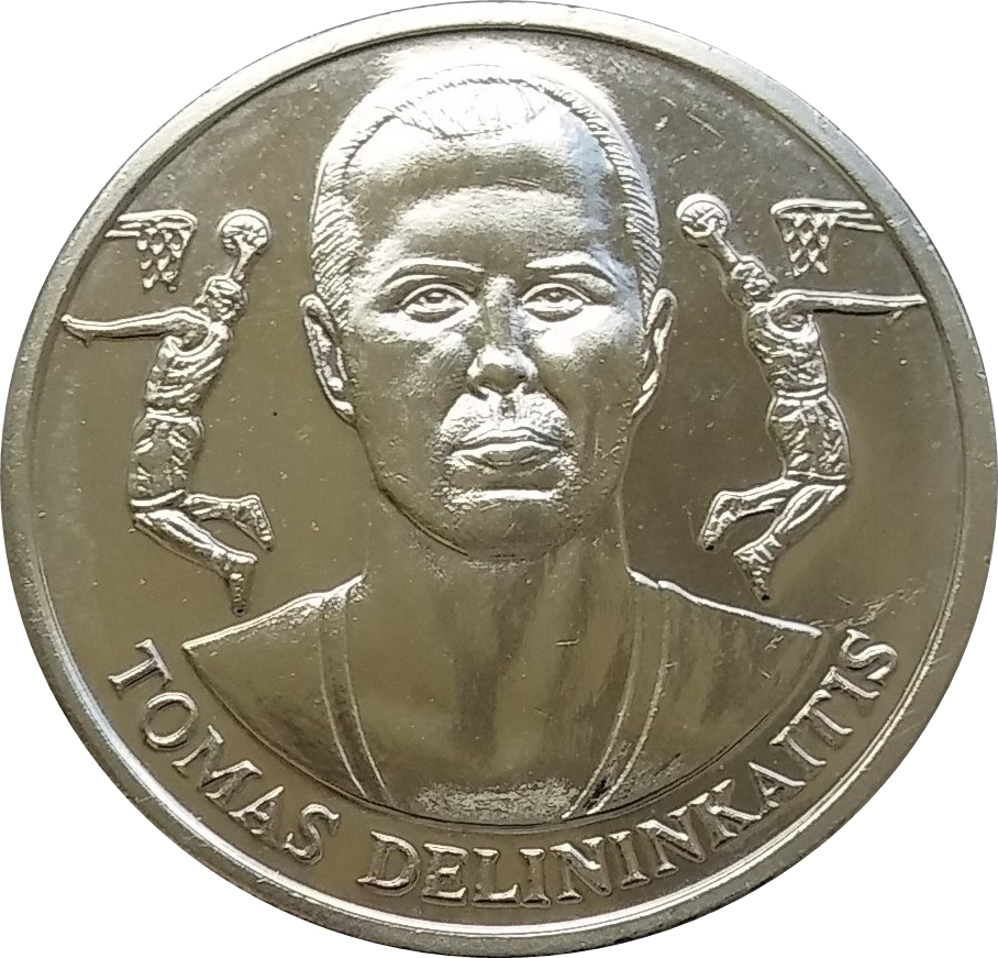 Опис: ТОМАС ДЕЛІНІНКАЙТІС (1982). З баскетбольною командою Литви виграв срібні медалі на чемпіонаті Європи 2013 року та бронзові медалі на чемпіонаті світу 2010 року.