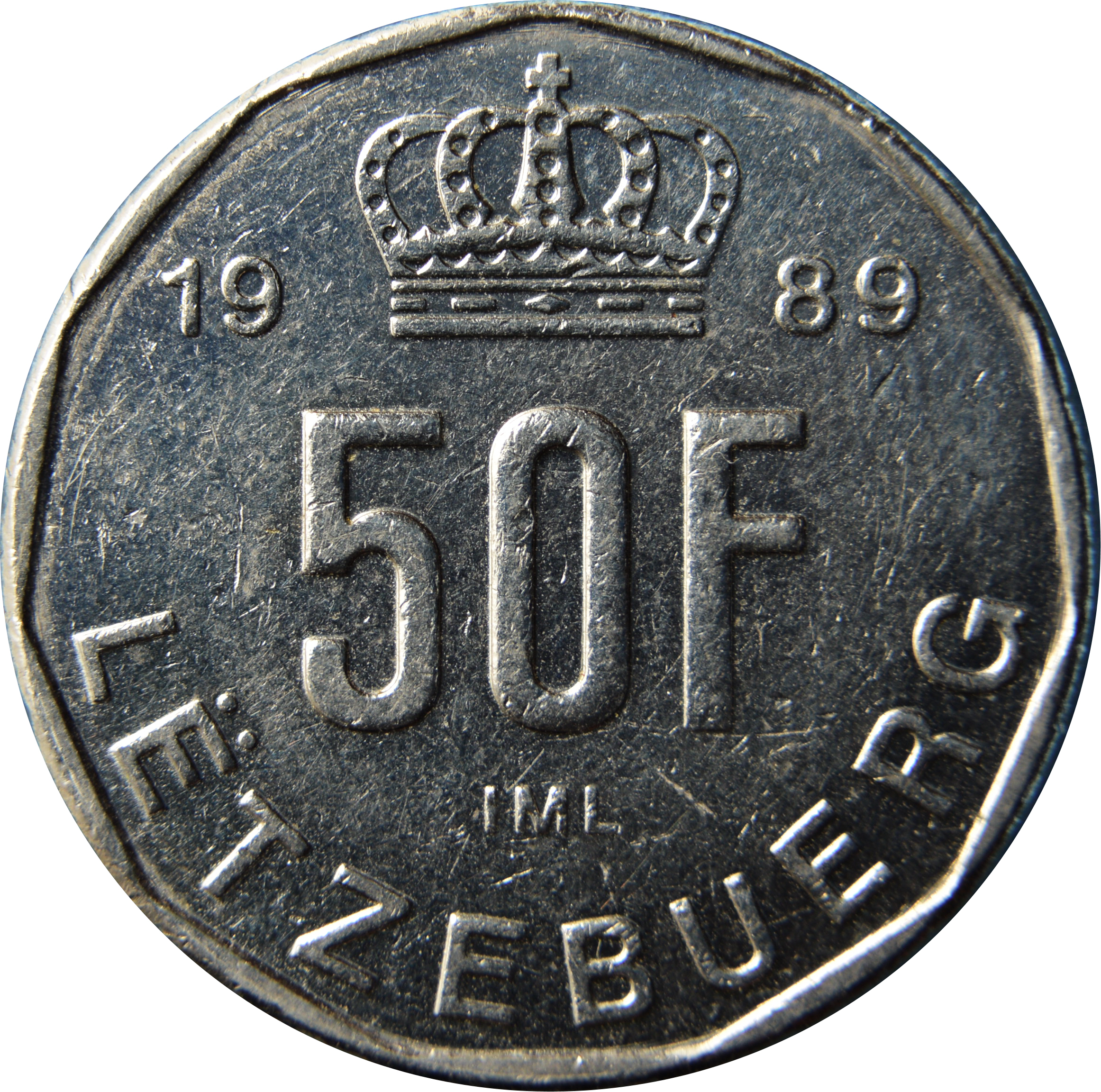 Опис: Номінал, розташований над монограмою «IML» Люксембурзького монетарного інституту та написом «LËTZEBUERG», увінчаний великокнязівською короною, по обидва боки якої розміщено дату.