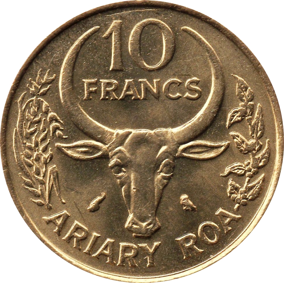 10 франків / 2 аріари (ФАО) 1970 – 1989 Мадагаскар
