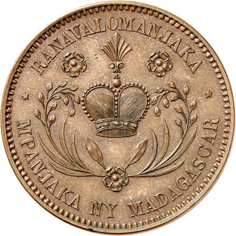 Назва: 5 франків — Ранавалона III (дрібний шрифт)