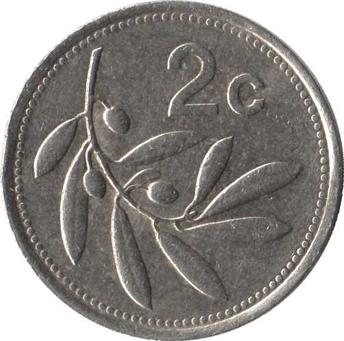 Опис: Герб із зображенням прибережної сцени з сонцем, що сходить, традиційним мальтійським човном («Луццу»), лопатою та вилами, а також рослиною опунція. На зовнішній стороні монети розміщено тодішню нову назву Республіки Мальта та дату.