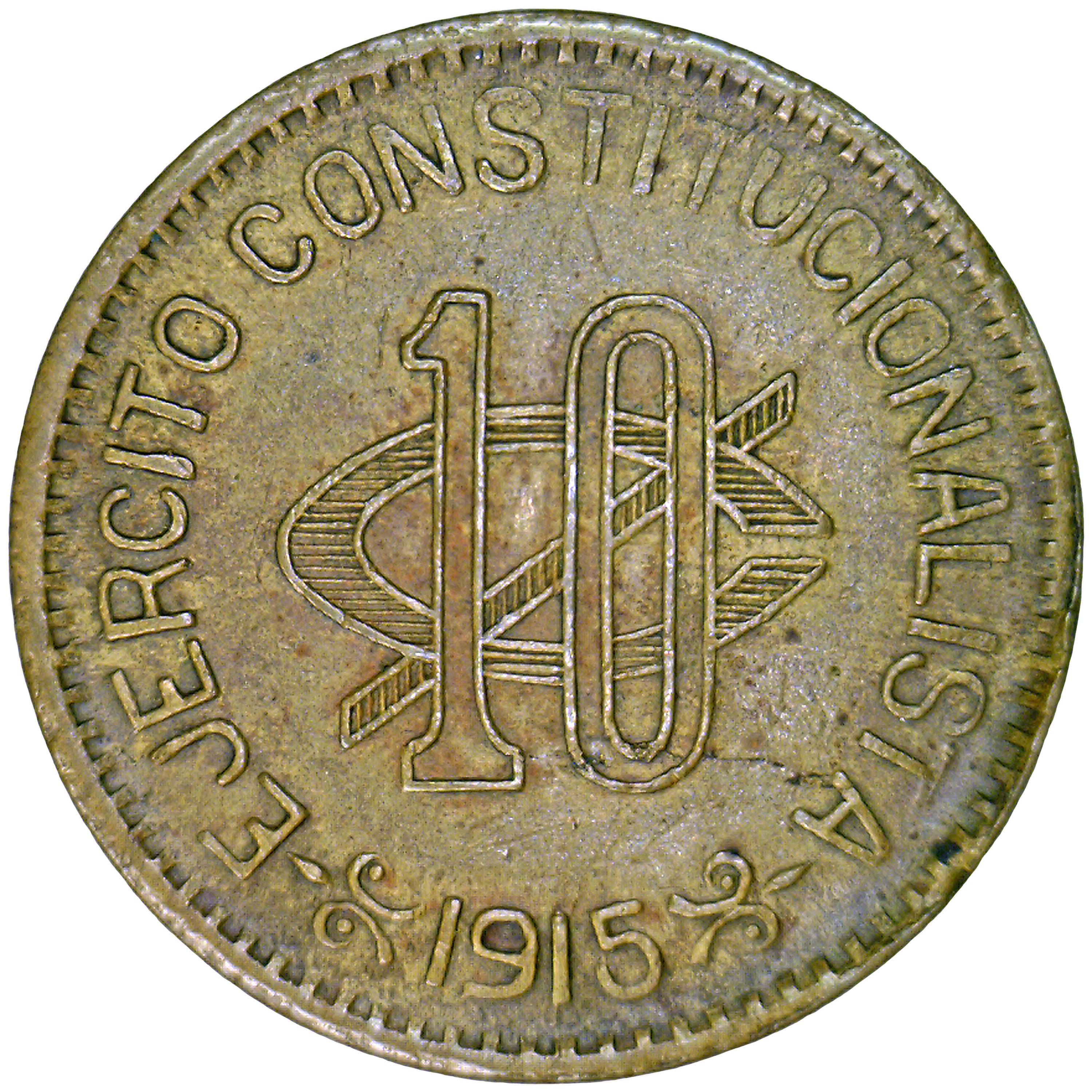 10 сентаво (Конституційна армія; латунь) 1915 – 1915 Чіуауа, штат