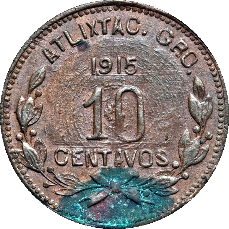10 сентаво (Атлікстак; без крапки) 1915 – 1915 Герреро, штат