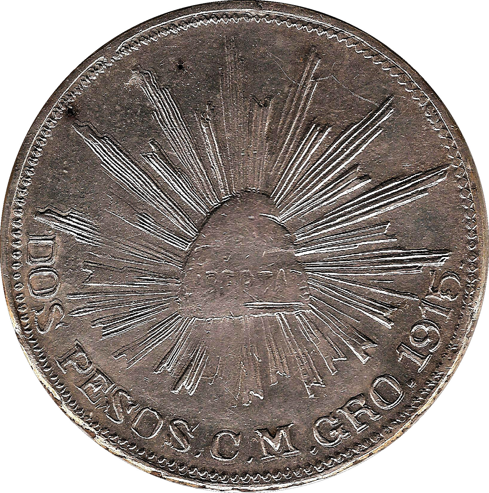 2 песо (Кампо Морадо) 1915 – 1915 Герреро, штат