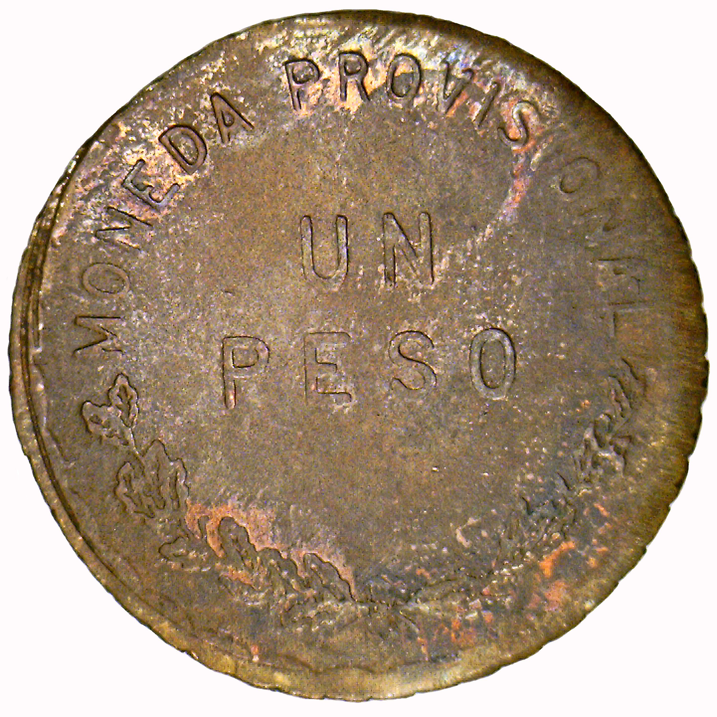 1 песо (Тимчасовий уряд; Незакінчене скорочення; Мідь) 1915 – 1915 Оахака, штат
