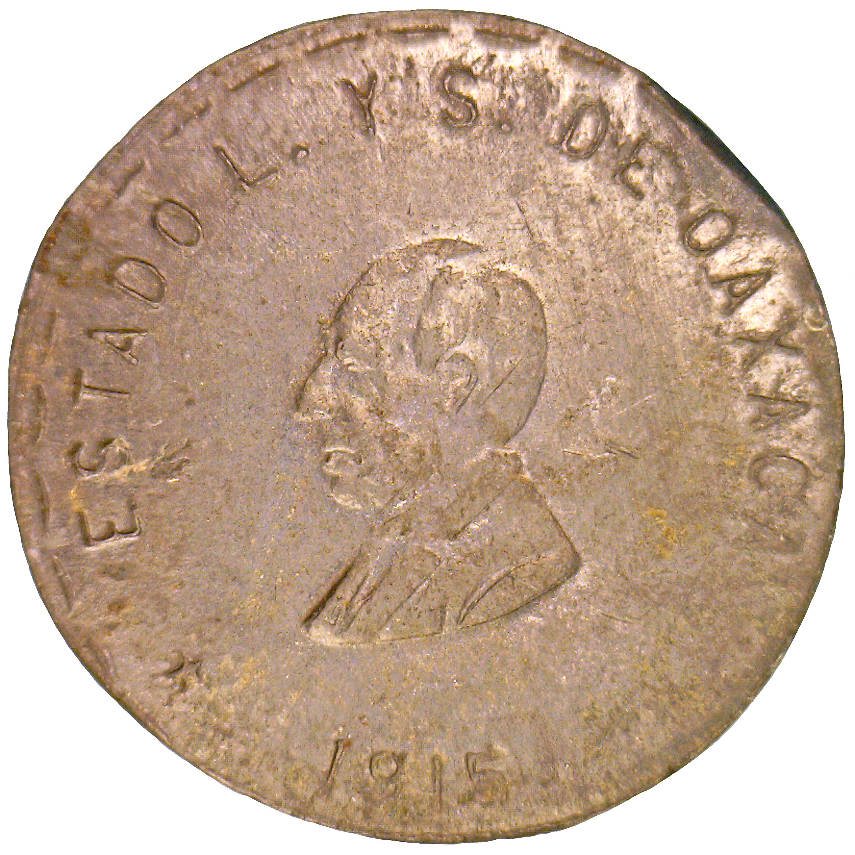 2 песо (Тимчасовий уряд; вигнутий низ, свинець) 1915 – 1915 Оахака, штат