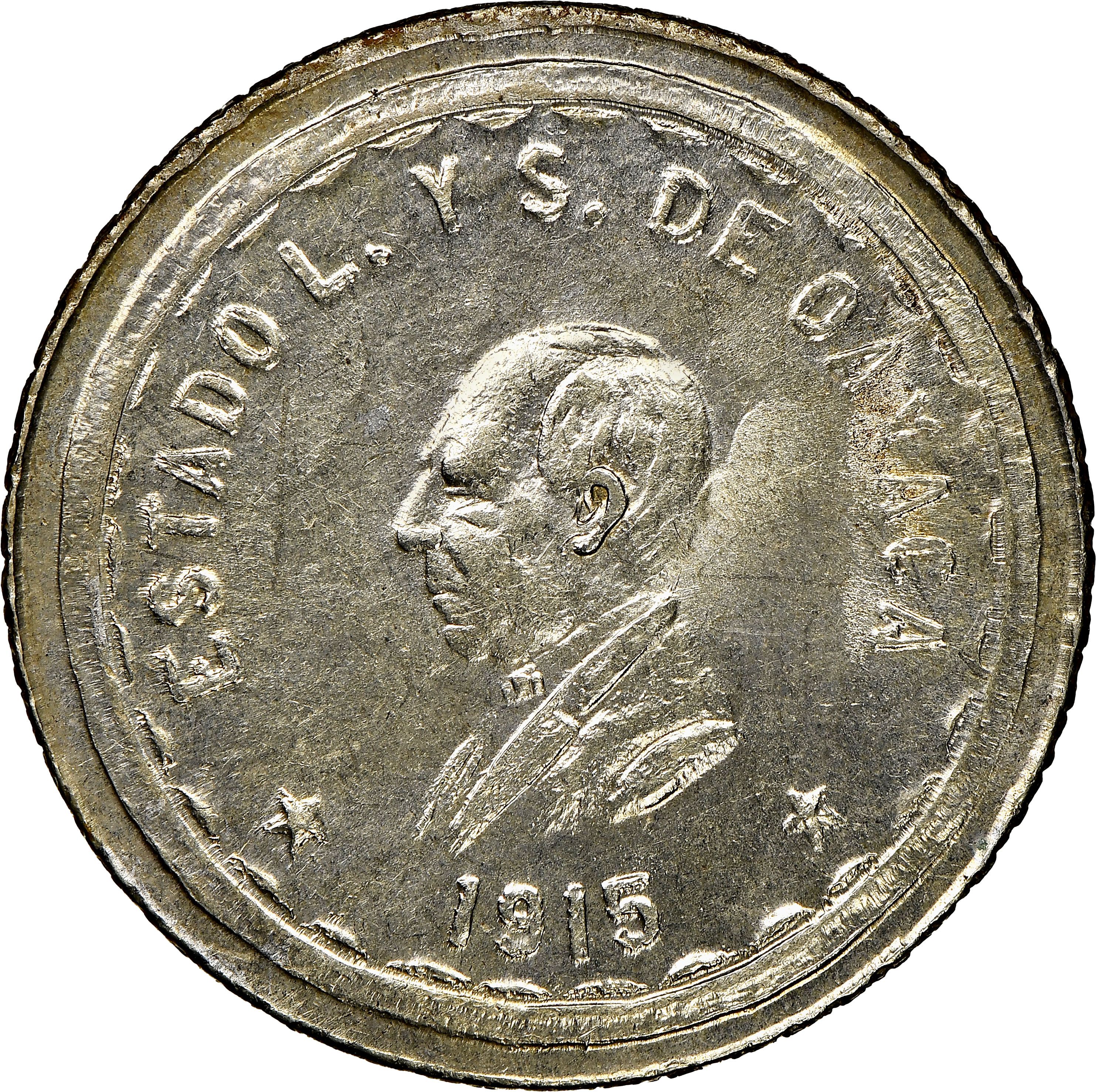 2 песо (Тимчасовий уряд; незавершена обрізка) 1915 – 1915 Оахака, штат
