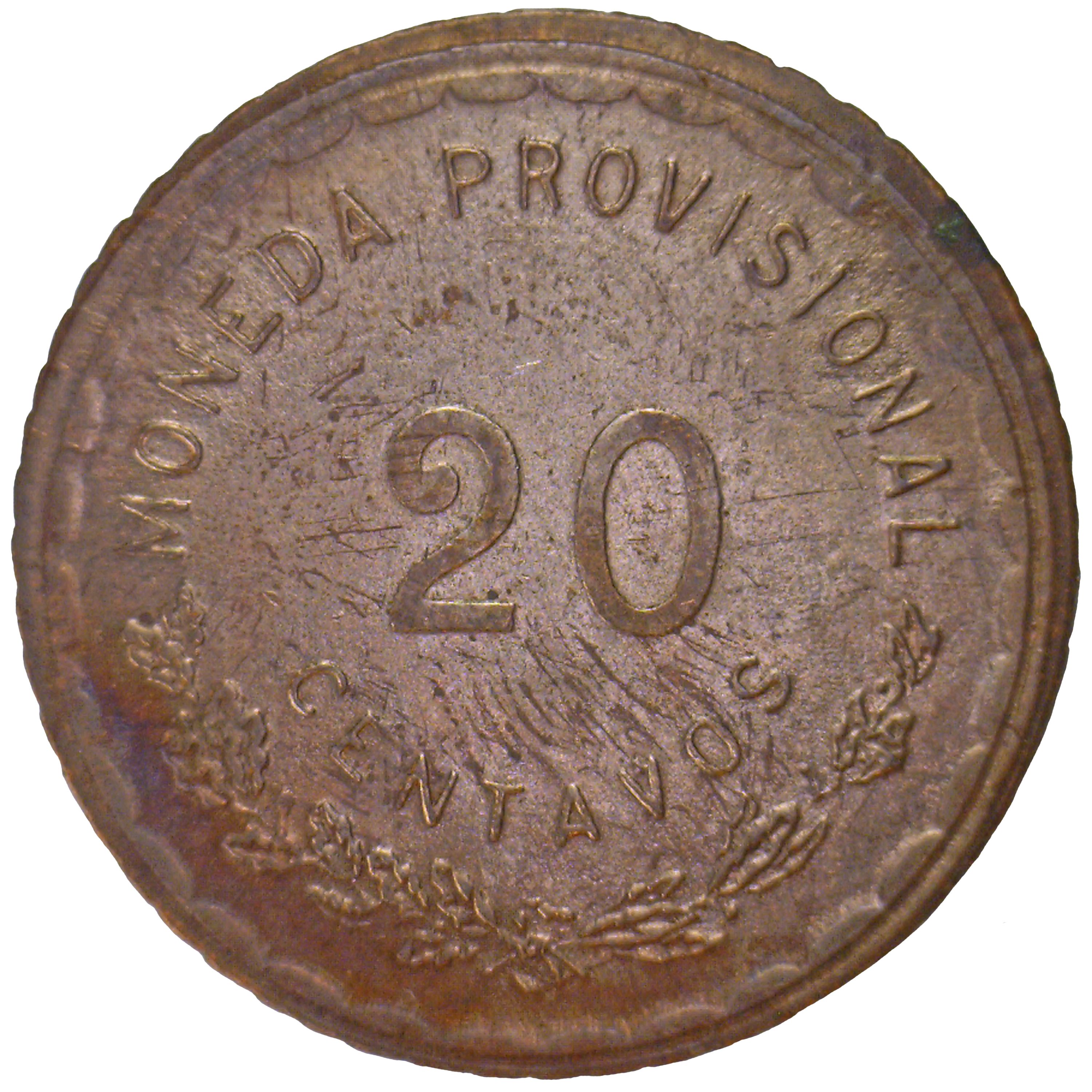 Назва: 20 сентаво (Тимчасовий уряд; вигнутий низ)