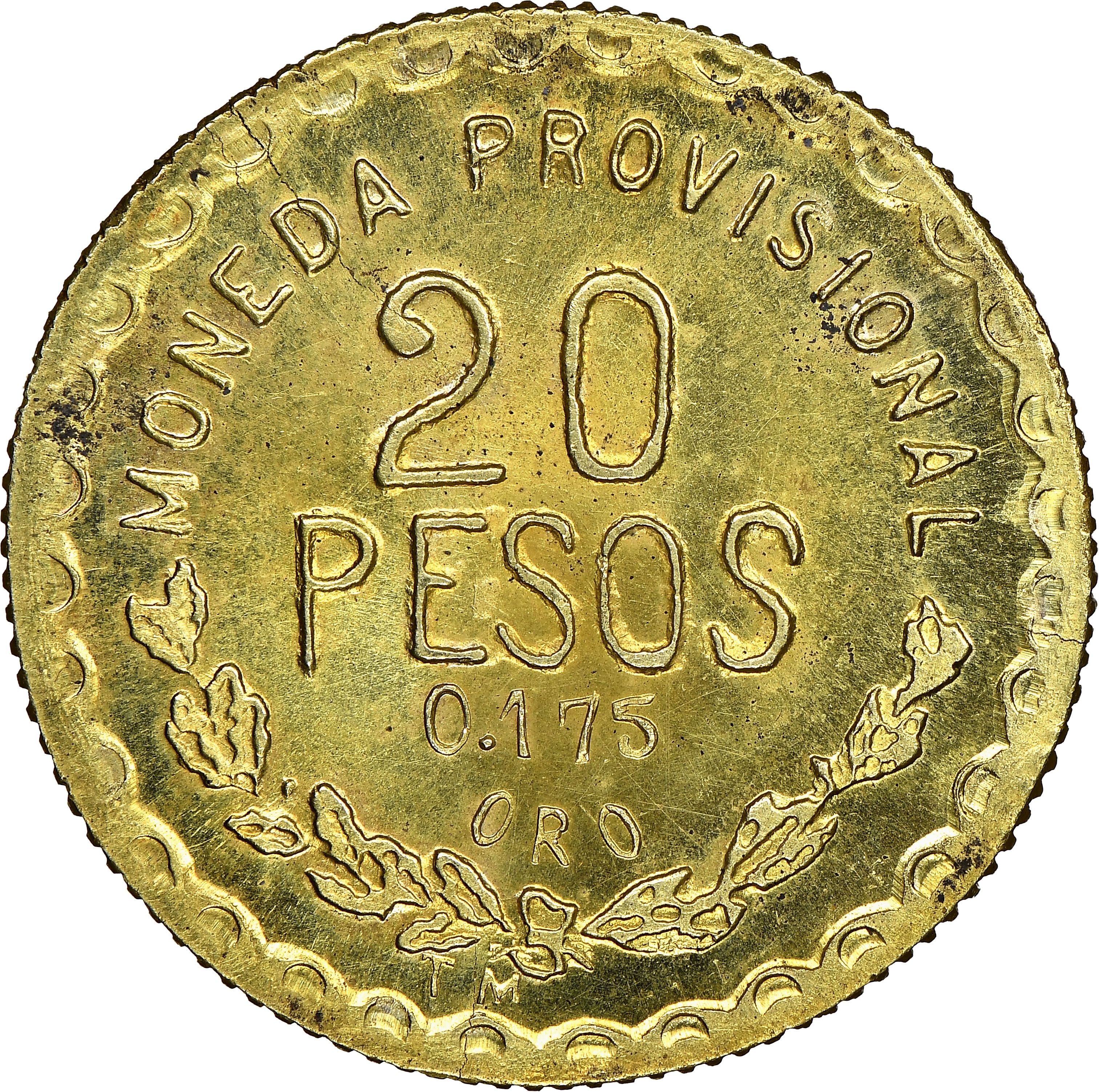Назва: 20 песо (Тимчасовий уряд; закриті лацкани)