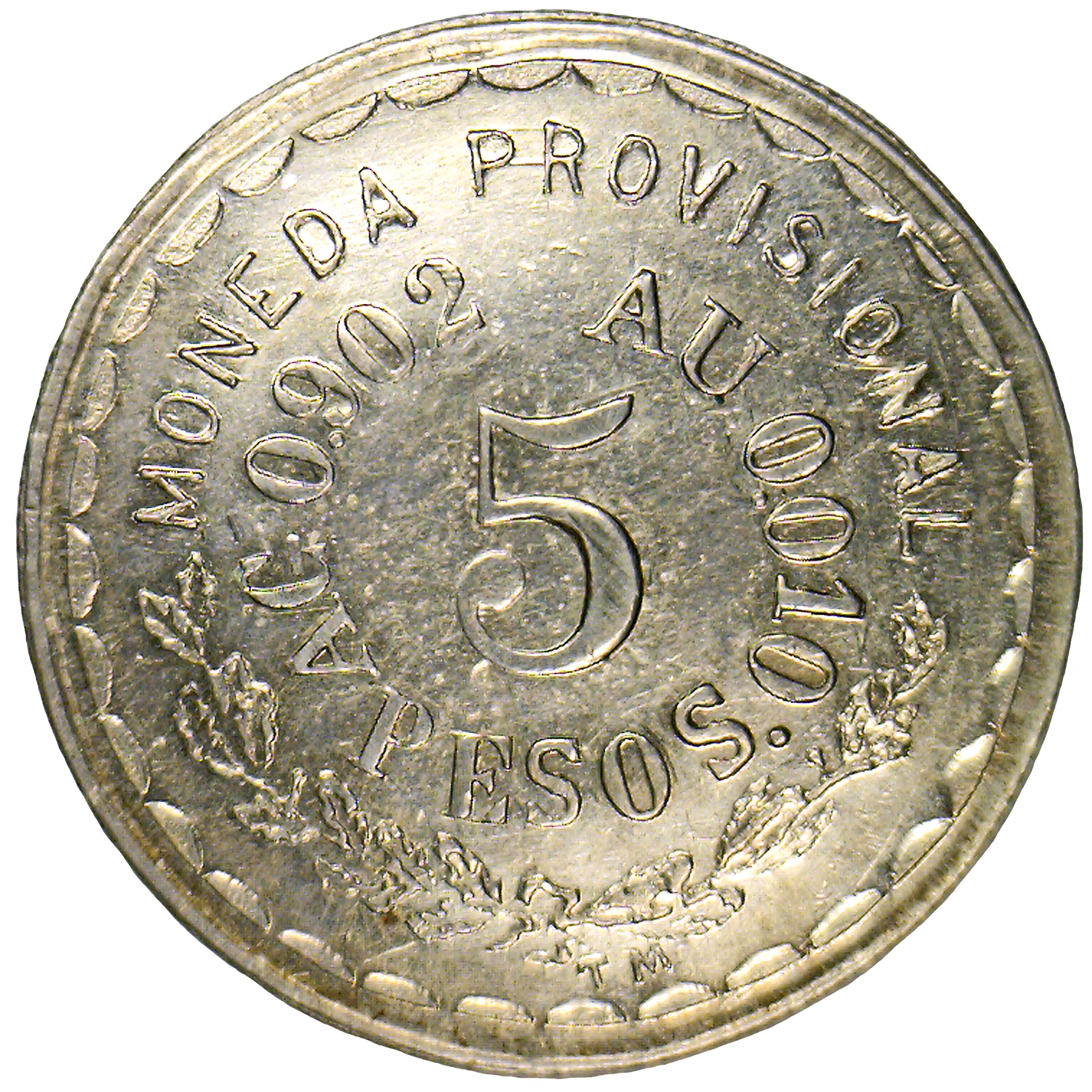 Назва: 5 песо (Тимчасовий уряд; коротке скорочення із закритими лацканами)