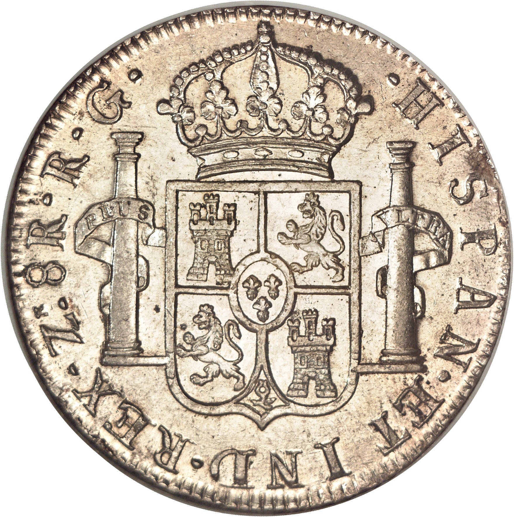 8 реалів — Фердинанд VII (Сакатекас — монети роялістів) 1813 – 1822 Закатекас, штат